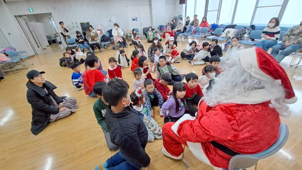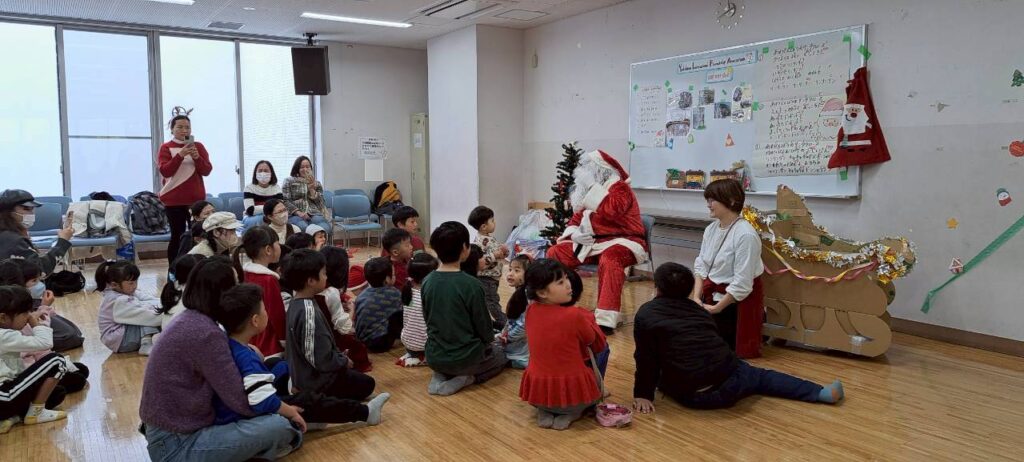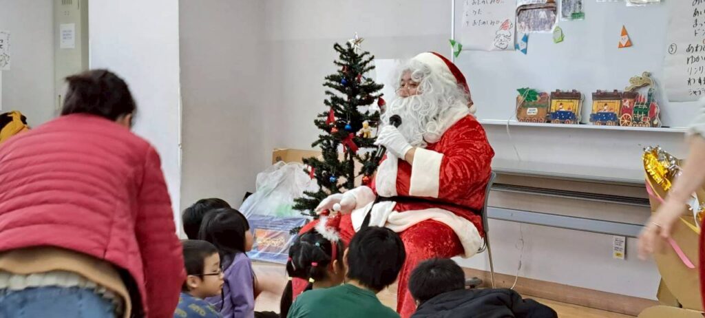 もちろん最後はサンタクロースの登場で、子どもたち大歓声!そして質問責め😆愉快なおひげのサンタクロース🎅からプレゼントもらい笑顔でみなさん帰られました。