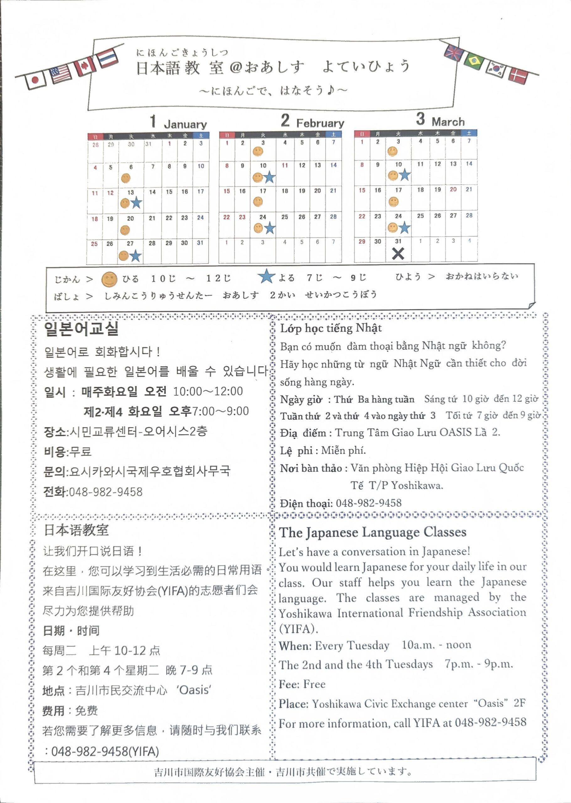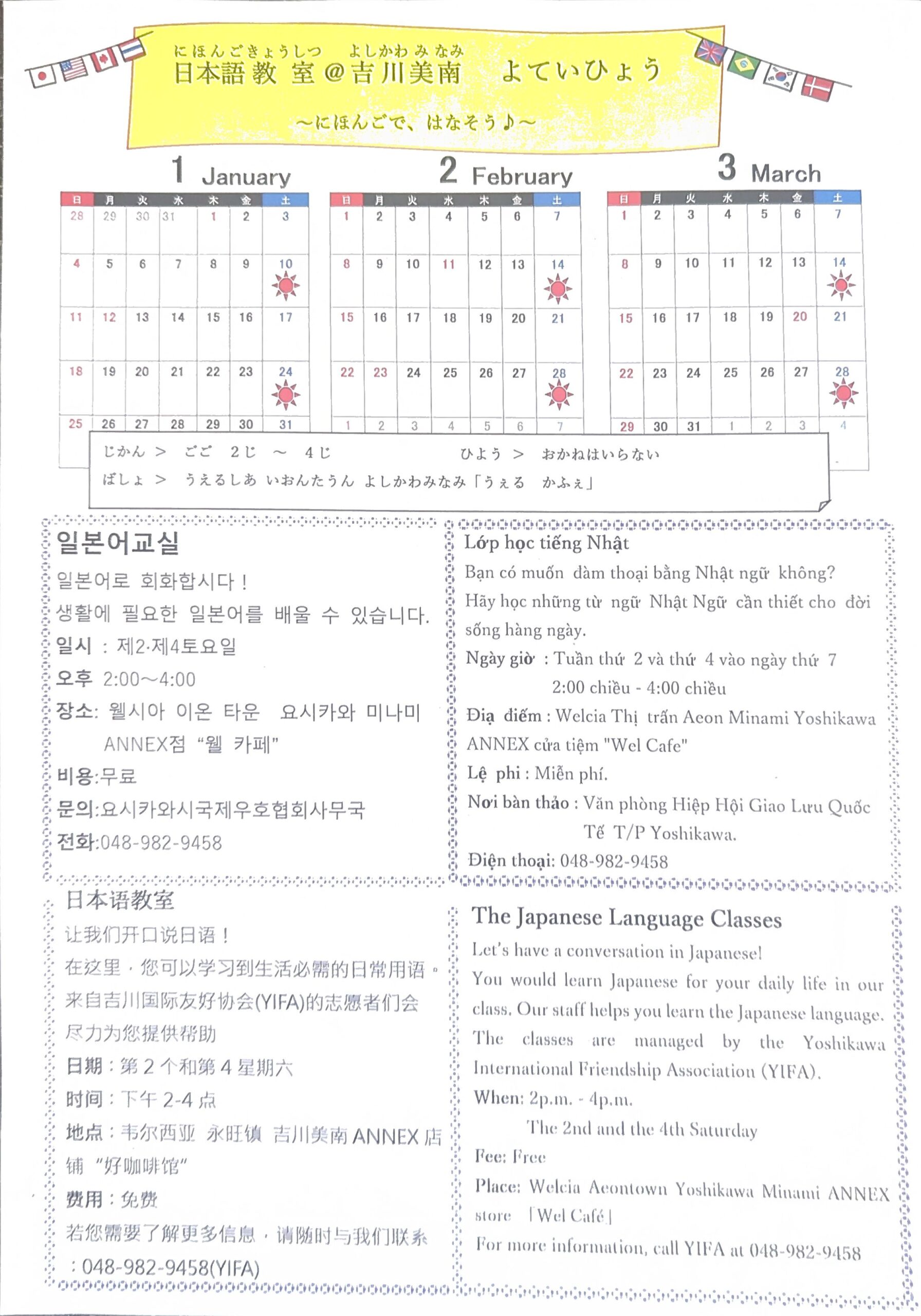 問合せ:吉川市国際友好協会 吉川市国際友好協会事務局(吉川市役所市民参加推進課内)